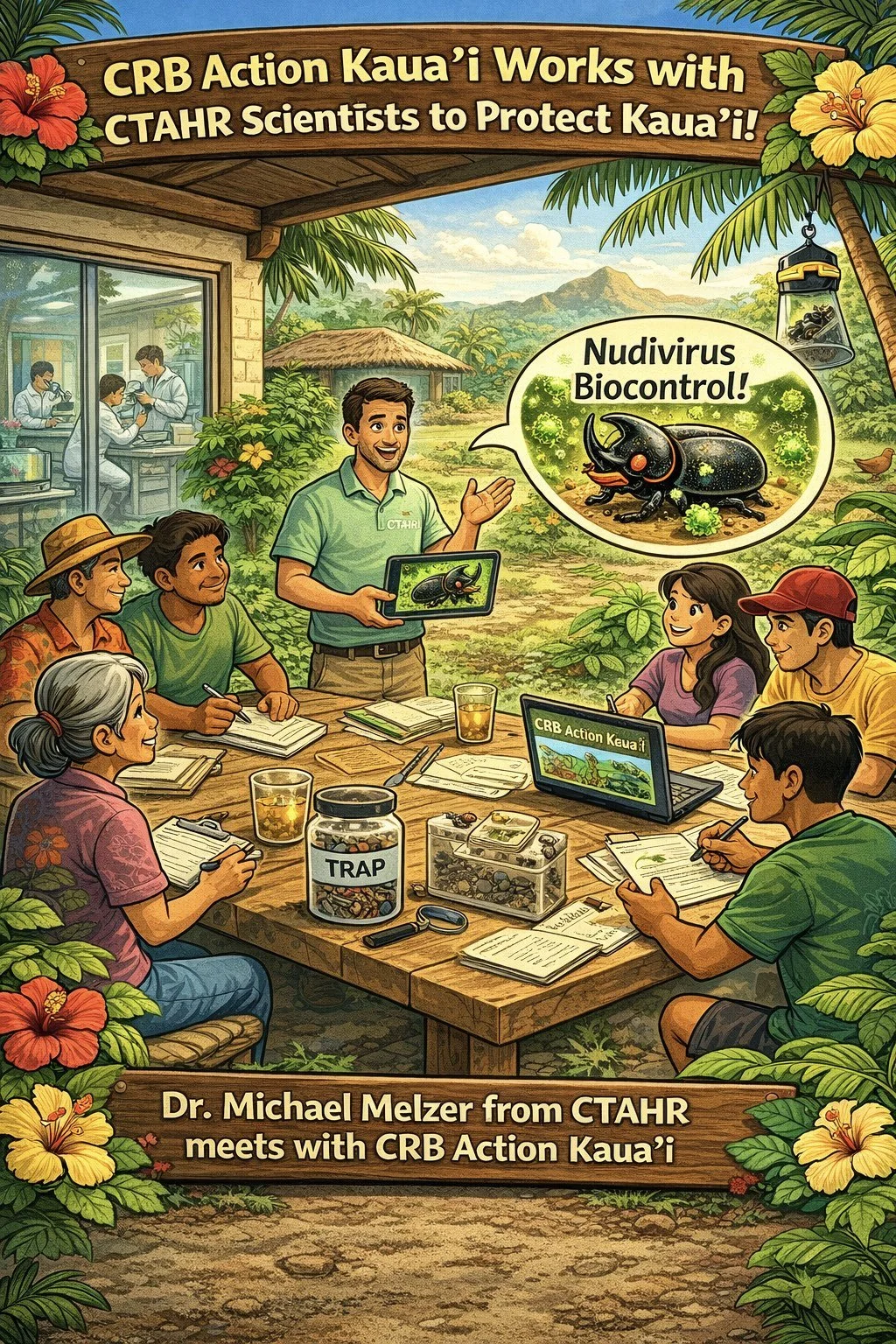 A few CRB Action Kaua’i Advisors met with Dr. Michael Melzer from CTAHR at UH Manoa at our home here on Kaua’i to learn more about the important work Dr. Melzer and his team are doing — and how that will be used on Kaua’i.